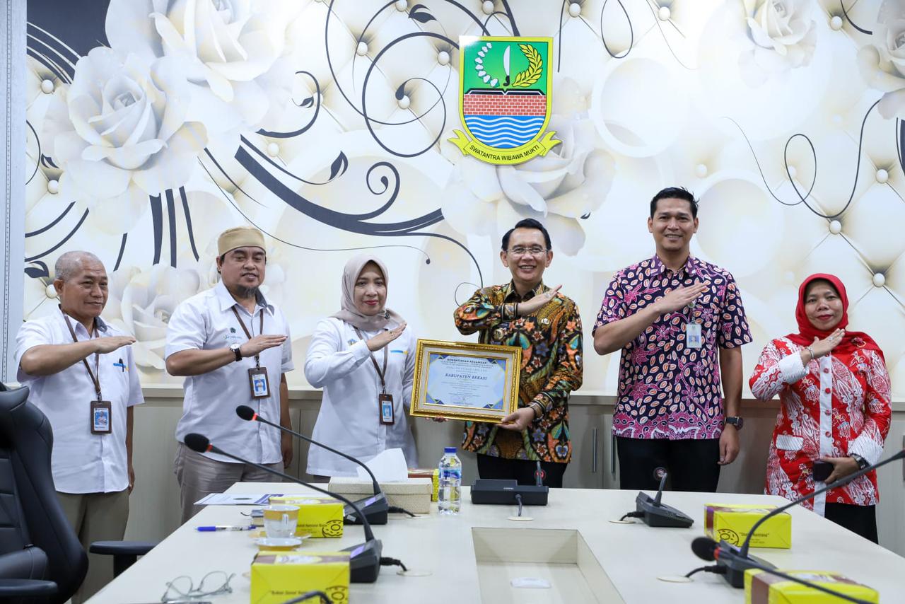 Penghargaan diserahkan langsung oleh Kepala KPPN Bekasi, Hajoe Septaria kepada Pj. Bupati Bekasi Dani Ramdan, bertempat di Ruang Rapat Bupati, Komplek Pemkab Bekasi, Cikarang Pusat, Kamis (23/2/2023).