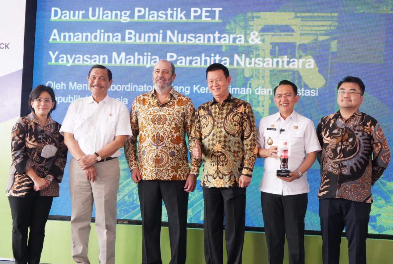 Kabupaten Bekasi,Metrodua.com - Pemerintah Kabupaten Bekasi menyambut baik kunjungan kerja Menteri Koordinator Bidang Kemaritiman dan Investasi Republik Indonesia (Menko Maves) Luhut Binsar Pandjaitan, dalam rangka meresmikan pabrik daur ulang botol plastik berjenis Polyethylene Terephthalate (PET), yang merupakan kerjasama Coca Cola Europacific Partners (CCEP) Indonesia dan Dynapack Asia dengan PT. Amandina Bumi Nusantara dan Yayasan Mahija Parahita Nusantara. Pabrik tersebut bertempat di Kawasan Industri GIIC Deltamas, Cikarang Pusat.