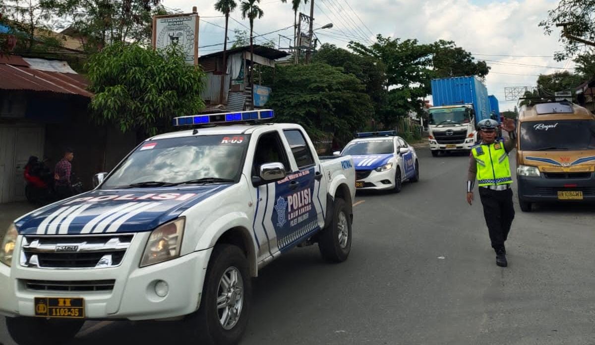 Untuk memastikan keamanan dan kenyamanan melintasnya Mobil intercooler bermuatan logistik F1 H2O Personil Sat Lantas Polres Simalungun melaksanakan pengawalan disepanjang jalan lintas sumatera Wilayah Kabupaten Simalungun menuju Kabupaten Toba, Minggu(12/2/2023)