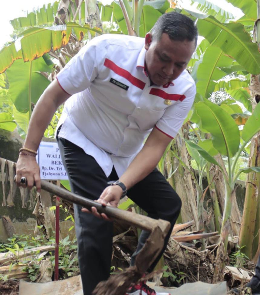 Kota Bekasi.Metrodua.com - Bertempat di RW 12 Villa Jatirasa, Kecamatan Jatiasih, Plt. Wali Kota Bekasi, Tri Adhianto lakukan Penanaman Bibit Pohon Sukun guna memaksimalkan penghijauan serta mencanangkan gerakan tanam bibit mandiri untuk pemenuhan kebutuhan pangan rumah tangga. Selasa (31/01/2023).